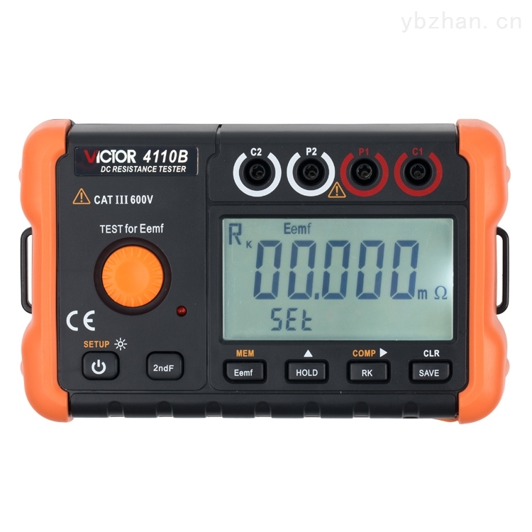 VICTOR 4110B 直流低电阻测试仪用直流激励4极法测量,适用于测量电缆的导线电阻,开关、接插件、继电器的接触电阻,线圈、电动机、变压器绕组的电阻以及金属铆接电阻,金属构件之间联结电阻测试,低值电阻测试,地网地极间连接导体的电阻测试,接触电阻测试。